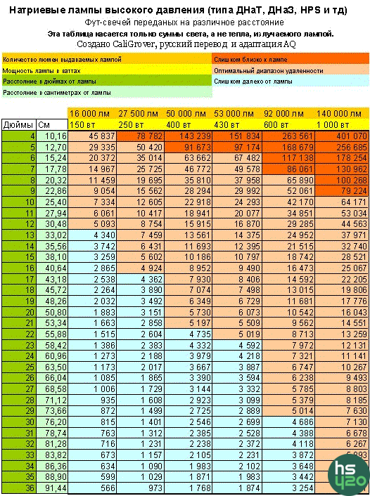 Подскажите насколько эти таблицы верны ? И на каком расстоянии измеряет производитель лампы Днат и Дри 250 ватт ?