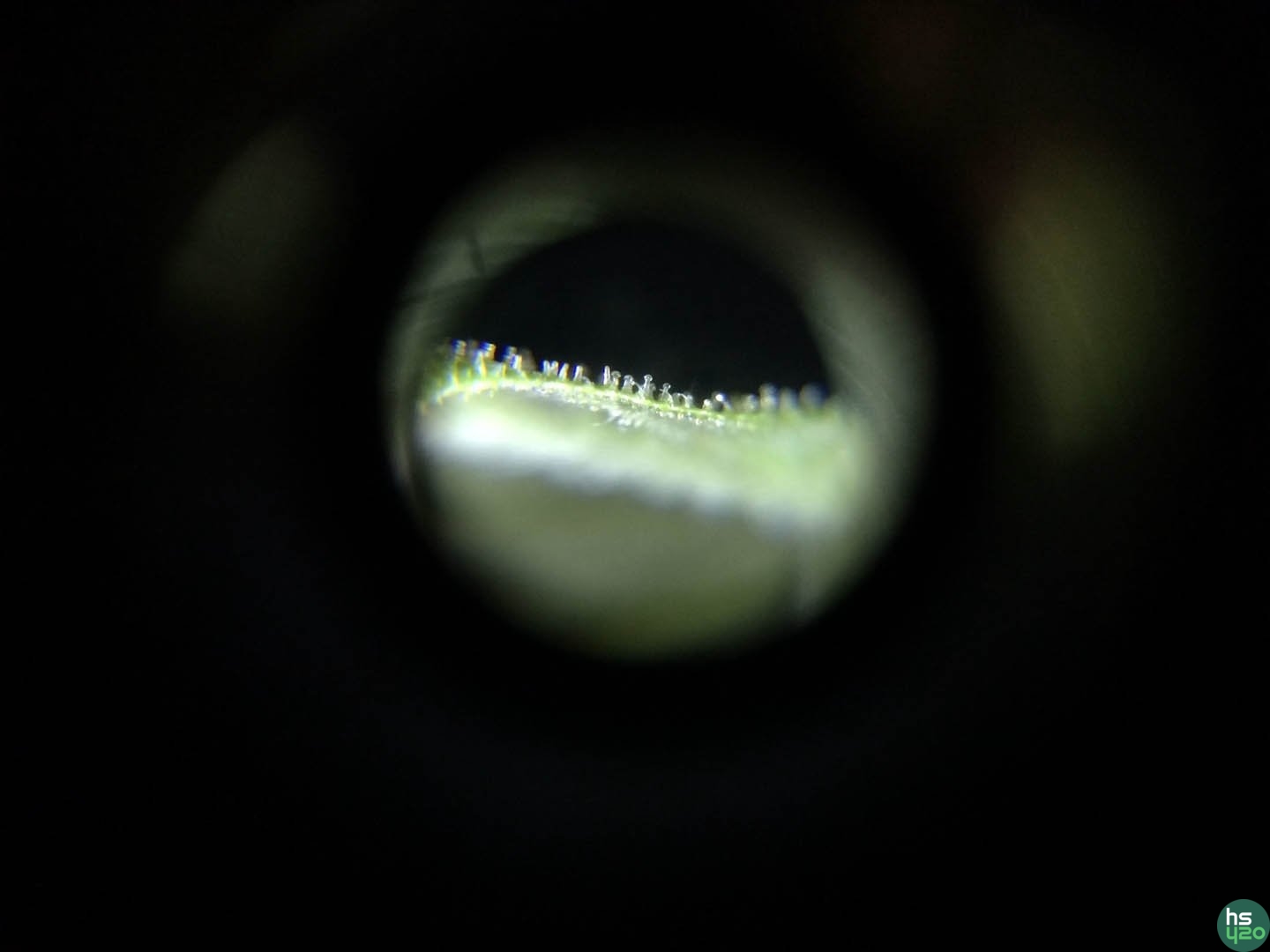 Макро-съемка пожелтевших листьев. Трихомы с обоих сторон листа :)
