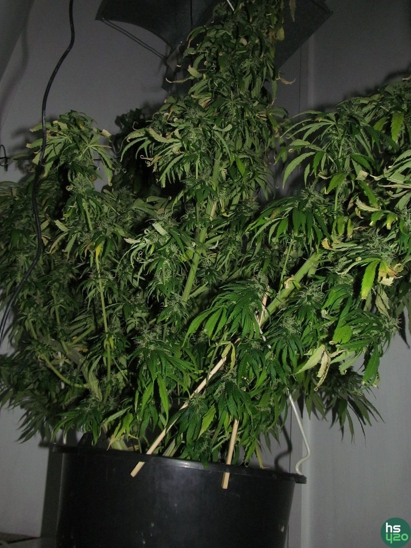 Да рост 174 см от пола (с ведром) в немного загнутом состоянии .... явно не для микро грова сорт :) Хотя первая и была более менее компактна (1.3 метра) эта всё тянется и наращивает и шишки и рост день за днём .... потолки 2.08 метра ,но я уже под углом самую высокую колу пустил ,так как не уверен что 40 см ей хватит ,да и перерастать лампы не стоит .