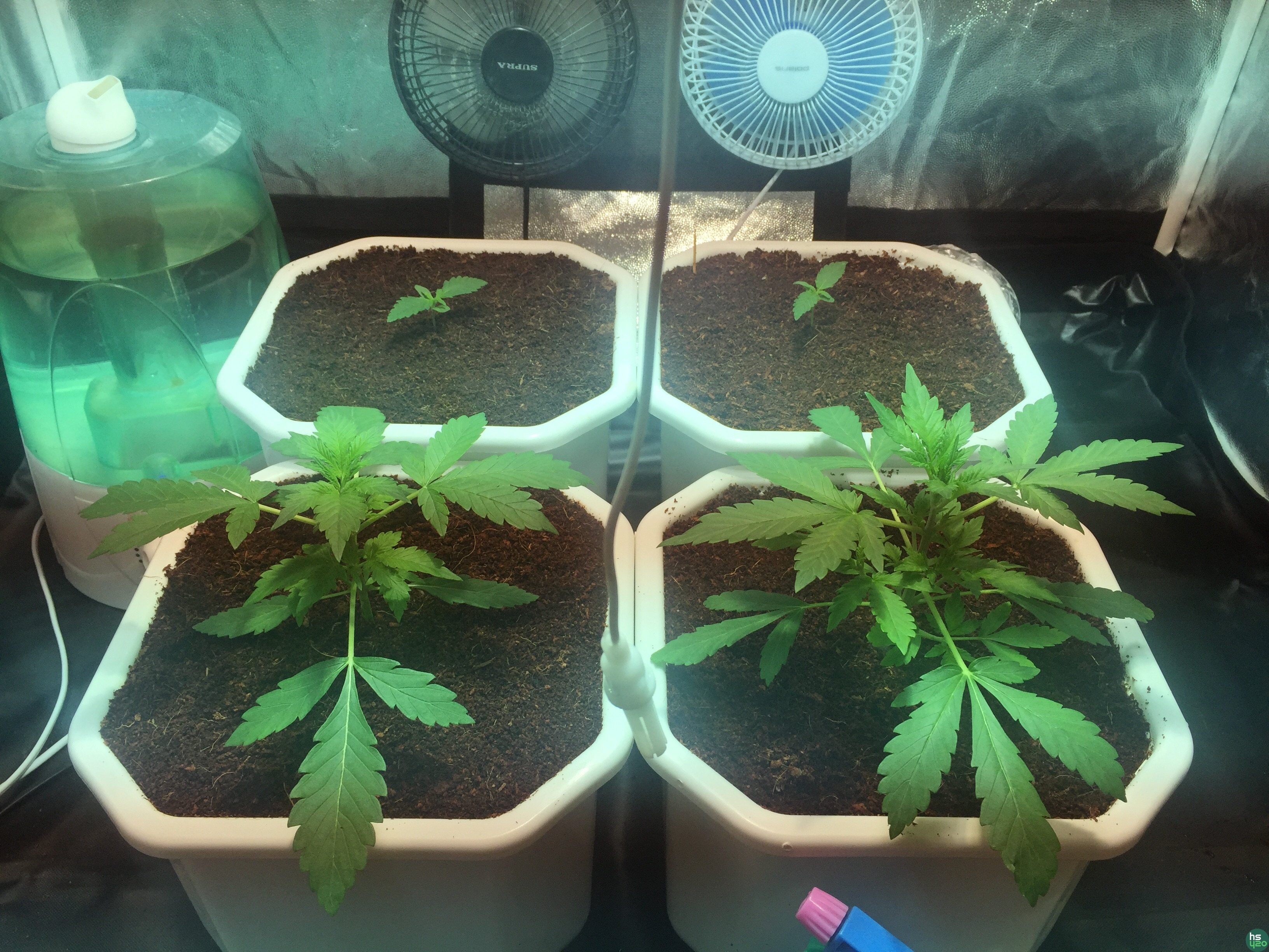 Нижние сегодня получили первый бак гро 400ппм, учитывая что в горшках уже остовалось по 400ппм пролил сначала водой до дренажа, затем компотом 2л каждой по 400ppm