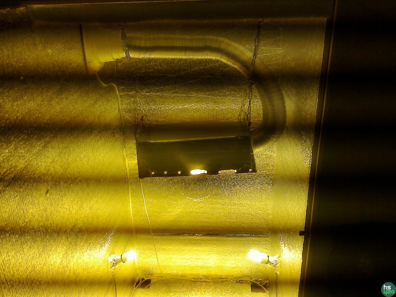 Поставил вентиль 300 кубометров,который забирает горячий воздух из коннектора и из гроубокса (через дырки в коннекторе)